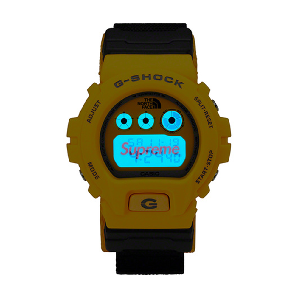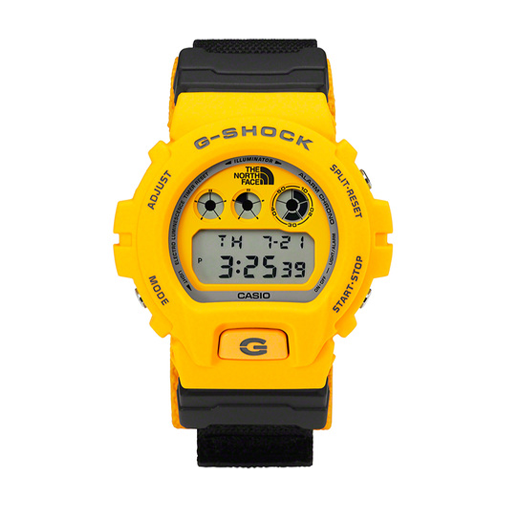 G-Shock resistant DW-6900 watch with woven velcro band. Water resistant up to 200 meters. Features LCD display with EL backlight logo, countdown timer, 1/100 sec. stopwatch, alarm and auto-calendar.